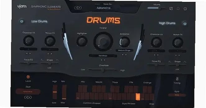 Built on UJAM’s proprietary Engine platform, Symphonic Elements: Drums provides real-time manipulation through integrated sound-shaping tools. The interface includes macro controls for attack, decay, tone, and spatial depth, allowing rapid tonal adjustments without leaving the host environment.